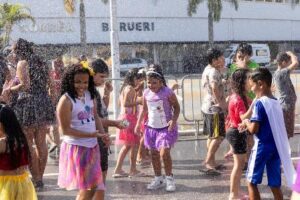 Na tarde do domingo, 15 de fevereiro, a temperatura ultrapassava os 30ºC nas proximidades do Ginásio Poliesportivo José Corrêa. No local, foi realizada mais uma edição do Carnaval de Barueri, promovido pela Secretaria de Cultura e Turismo (Secult).