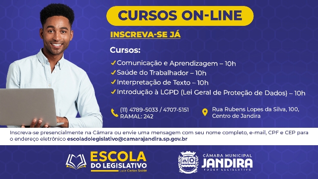 Escola do Legislativo jandirense disponibiliza novos cursos aos servidores e à população Leia MaisMesmo após vencer Bragantino, comandante é desligado