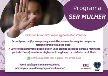 Programa da LBV oferece acolhimento psicológico on-line e gratuito e ajuda mulheres a romper o ciclo de violência Leia MaisMinistro é acusado de tentar agarrar jovem de18 anos filha de amigos