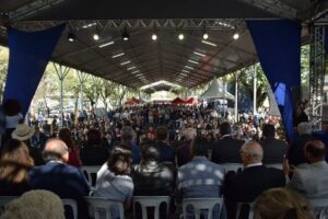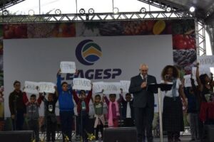 Logo após as apresentações artísticas, a diretoria da CEAGESP, composta pelo diretor-presidente Jamil Yatim, pelo diretor técnico-operacional José Lourenço Pechtoll e o diretor financeiro Hamilton Ribeiro Mota, acompanhados do ministro Paulo Teixeira, do Ministério do Desenvolvimento Agrário e Agricultura Familiar (MDA), lideraram a cerimônia de aniversário da companhia. “É um prazer estar aqui nesta data maravilhosa. Quero agradecer a presença de nosso querido ministro, deputados estaduais e estaduais, vereadores e todos os nossos permissionários, que ajudaram a construir a festa, bem como os sindicatos”, disse Jamil ao abrir a solenidade.