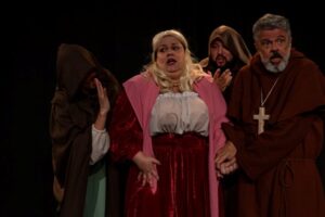 Embora escrita há décadas, a obra se revela surpreendentemente atual, com cardeais corruptos, testemunhas falsas, repleta de servas e demônios que conduzem a trama para o paradoxo e o absurdo, reforçando a potência do texto de Dario Fo e sua capacidade de dialogar com diferentes contextos históricos.