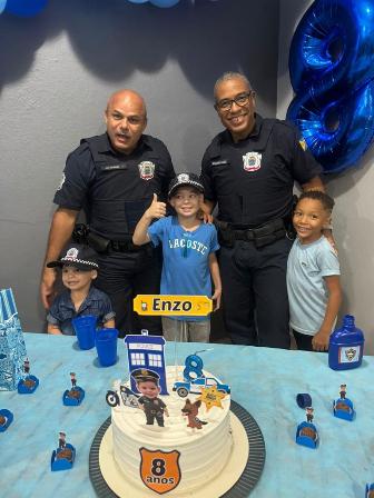 A Guarda Civil Municipal de Barueri, da Secretaria de Segurança Urbana e Defesa Social, foi a grande inspiração da festa de aniversário de Enzo Barbosa, que completou oito anos no dia 10 de fevereiro, no bairro Engenho Novo. Admirador da corporação, o menino escolheu o tema para celebrar a data ao lado da família e amigos.