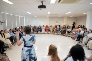O encontro contou ainda com apresentação da cantora gospel Soraya Moraes, que emocionou as participantes ao interpretar o sucesso “Quão Grande é o Meu Deus”. Reconhecida nacional e internacionalmente, a artista é uma das vozes mais premiadas da música gospel brasileira.