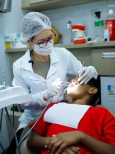 “Nesse primeiro contato, realizamos procedimentos como profilaxia e avaliação clínica, além de orientar sobre a saúde bucal, destacando a importância da escovação dos dentes de forma lúdica e acessível para as crianças, além de garantirmos a continuidade do cuidado encaminhando os pacientes que precisam de tratamento para a Unidade Básica de Saúde (UBS) de referência, onde os profissionais dão sequência ao atendimento”, destacou a cirurgiã-dentista.