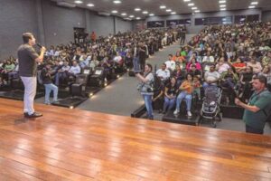 A cerimônia de abertura foi marcada pela palestra inspiradora do renomado comunicador Facundo Guerra, eleito um dos 100 empreendedores mais influentes do mundo e participante da 6ª temporada do programa Shark Tank Brasil. Durante sua apresentação, Facundo compartilhou suas experiências e ofereceu dicas valiosas para aqueles que desejam empreender com sucesso.